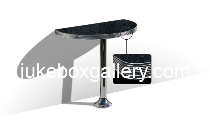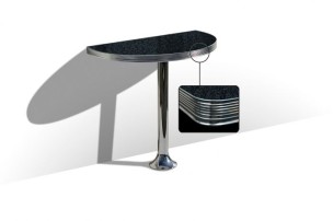 De WO-12 is een halfronde statafel die tegen de muur bevestigd kan worden. Ideaal als u niet genoeg ruimte heeft voor tafels en stoelen. De chromen afwerking langs het tafelblad geeft dit handige tafeltje een echte fifties uitstraling. De poot dient met speciale vloerankers aan de vloer bevestigd te worden.